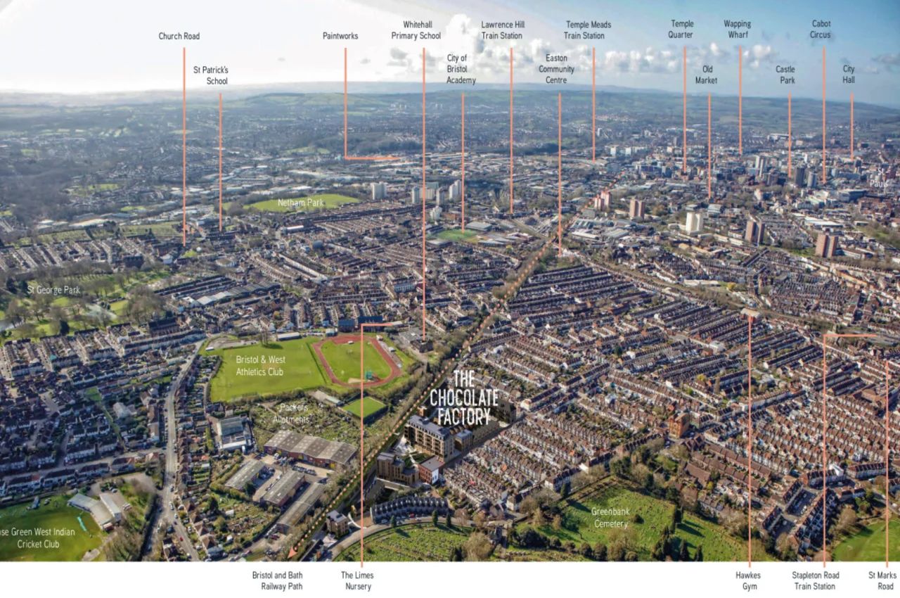 The Chocolate Factory is a brand new development in Bristol which builds on 100 years of history to deliver a collection of stunning luxury homes. This stunning development is suitable for all types of occupiers from families to young professionals. A landscaped open square and access to the Bristol and Bath Railway Path make it a highly attractive new neighbourhood for Bristol – a city where the supply of available housing is nowhere near enough to meet demand. The development also includes flexible workspaces, a new café and bar, and a community hub which will serve the nearby area. This sensitive, thoughtful conversion development is a landmark for Bristol and a home for current and future generations Designed to create a range of homes for all, The Chocolate Factory will include one and two-bedroom apartments, and four three-bedroom houses with private gardens and parking. Sensitively designed to compliment the surrounding streets of traditional terraced houses, homes at The Chocolate Factory will provide the best of modern living in an already thriving and sought after neighbourhood. The Chocolate Factory enjoys an enviable location offering direct entry onto the Bristol and Bath Railway Path, as well as easy access to public transport and amenities across Bristol and beyond. Bristol is a beautiful, historic city in the heart of England’s south west with an independent spirit and an unmistakeable vibe. High quality jobs, a unique cultural offering and great connectivity are just three of the reasons why people move to Bristol from across the country and the world. Located on the River Avon, this former port city offers stunning scenery and maritime history alongside a thoroughly modern city centre. A programme of regeneration works is underway and the local universities offer world class education, research and development prospects. It is also a city with nowhere near enough homes and a huge surplus of people competing for the best accommodation. Rents are very high and supply is low – in other words, Bristol offers the perfect conditions for property investors. Payment Plan: £5000 reservation fee (takes the unit off the market) Flexible downpayment between 15 - 20% DEPOSIT minus reservation fee Balance on completion Price: 1 bedroom starting from £296,835 Sq ft 619